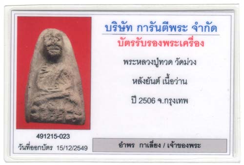 | เป็นหลวงปู่ทวดอีกพิมพ์ที่อาจารย์ทิมวัดช้างให้มาร่วมประกอบพิธี(เป็นประธาน) เนื้อว่านหลวงปู่ทวดปี97 ก็เอาขึ้นมาผสมด้วยครับ และพิมพ์นี้เป็นพิมพ์ใหญ่ กดพิมพ์ในช่วงก่อนเข้าพรรษาปี05 และพิมพ์ใหญ่กับพิมพ์เล็กเป็นพระภิกษุสามเณรและกรรมการวัด ช่วยกันกดพิมพ์ในระหว่างพรรษา และทำการปลุกเสกปลายปี05โดยมีเกจิชื่อดังหลายท่าน อาทิเช่น พระอาจารย์ทิม วัดช้างไห้ ,ลพ.เงิน วัดดอนยายหอม,ลพ.นอ วัดกลางท่าเรือ ,ลป.เขียน วัดถ้ำขุนเณร ,ลพ.เต๋ วัดสามง่าม,ลป.นาค วัดระฆัง,ลพ.จง วัดหน้าต่างนอก,ลพ.ทบ วัดพระพุทธบาทเขาย้อย ฯลฯ |