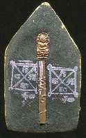 | ขุนแผนปู่โทนเนื้อดำทาทองหลังปรกมะขามตะกรุดทองแดง1 |
