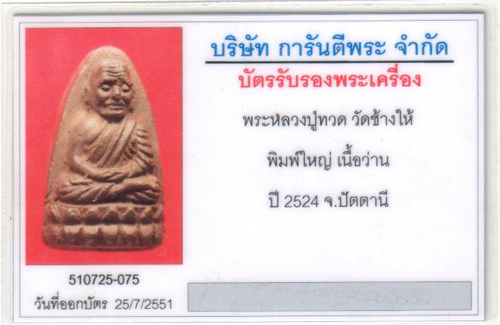 หลวงปู่ทวด เนื้อว่านปี2524 พิมพ์ใหญ่#2