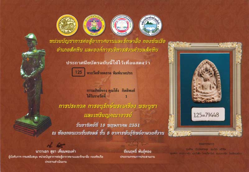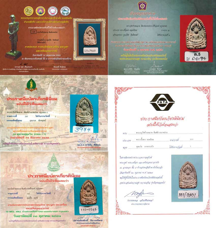 ยอมรับกันว่าพระพุทธโฆษาจารย์ (ขุน) แห่งวัดโมลีโลกยาราม (วัดท้ายตลาด) กทม. เป็นผู้สร้าง สันนิษกันว่าสร้างพิมพ์โดยช่างหลวงในยุครัตนโกสินตอนต้น สร้างไว้ในช่วงปี พ.ศ.2362-2480 ปลายรัชสมัย ร.2 เป็นพระเนื้อผง อันมีส่วนผสมของว่านและเกสรดอกไม้ร้อยแปดผสมกับปูนเปลือกหอยรวมทั้งผงใบลานเผาด้วย สำหรับองค์นี้ติดรางวัลหลายงานครับ รางวัลที่ 1 จำนวน 4 ใบ / รางวัลที่2 จำนวน 1 ใบ.