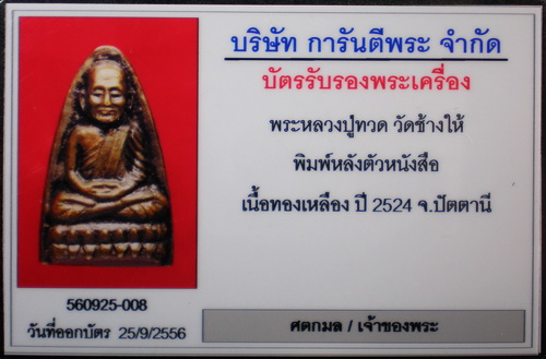 หลวงปู่ทวดหลังตัวหนังสือ ปี24 ทองเหลืองหลังสามจุด