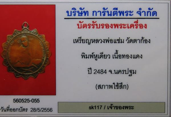 ลพ.แช่ม วัดตาก้อง พิมพ์นิยมหูเดียว