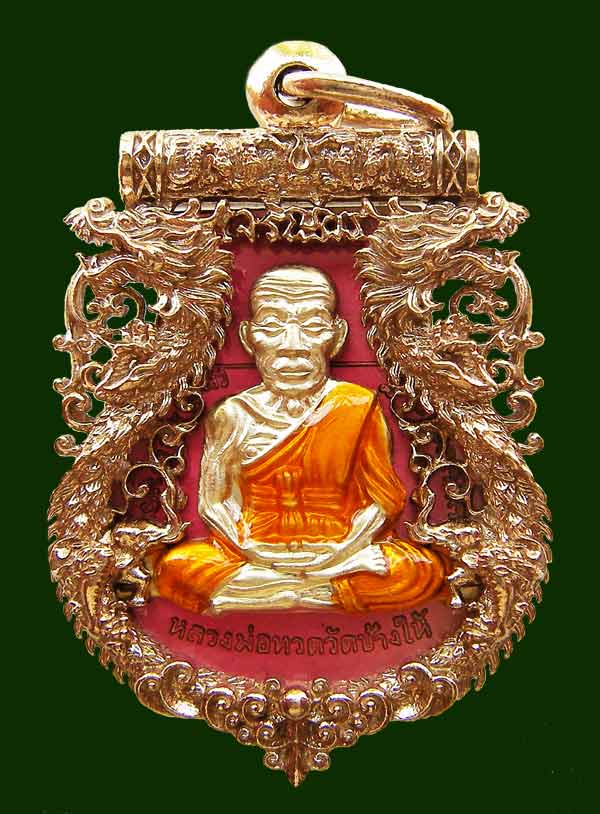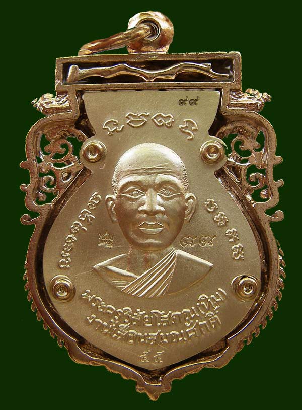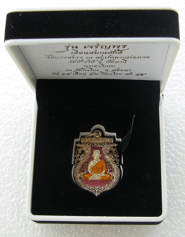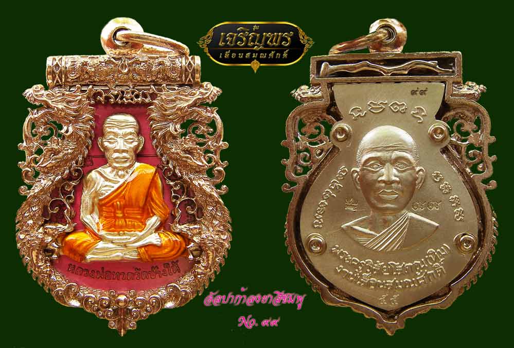 ลพ.ทวดเจริญพรเลื่อนสมณศักดิ์ วัดพะโค๊ะ เนื้ออัลปาก้า(ช้อนส้อม) ลงยาสีชมพู หมายเลข 99