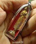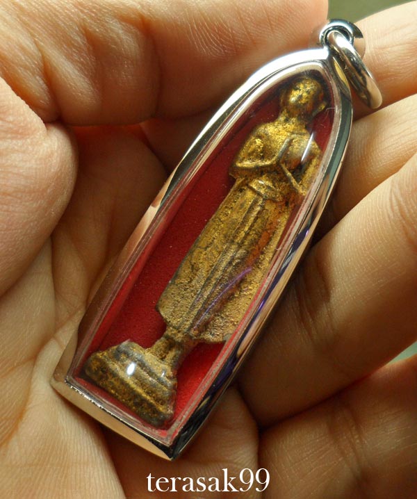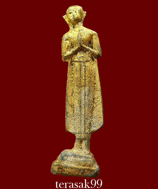 พระพิมพ์โมคคัลลานะ เนื้อชิินเงินปิดทองเดิมๆจากกรุ กรุวัดวังแดงเหนือ จ.อยุธยา เป็นพระเนื้อชินเงินปิดทอง เมื่อผลิกดูด้านหลังจะพบชาดสีแดงและรักดำ เป็นพระประดับผนังอุโบสถ อายุน่าจะช่วงปลายอยุธยาถึงยุครัตนโกสินทร์ครับ ขนาดโดยประมาณสูง 5.1 ซ.ม. สภาพสวยเดิมๆ พร้อมตลับสแตนเลสอย่างดีให้พร้อมใช้ ของดีราคาเบาๆแบ่งกันไปใช้ องค์จริงตามรูป ***รับประกันตามกฎทุกประการ.***
