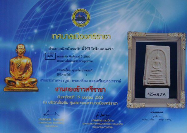 พระสมเด็จบางขุนพรหมปี๐๙ พิมพ์ฐานคู่ สวยแชมป์ สภาพสวยมากๆครับองค์นี้ ในสนามแทบหาไม่ได้แล้วครับ เนื้อเดิมแทบไม่เคยถูกสัมผัส แป้งตบพิมพ์ยังเห็นชัดเจน มาพร้อมใบประกาศรางวัลที่๑
