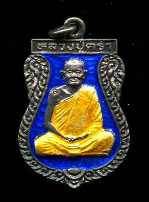 เหรียญสร้างหุ่นขี้ผึ้งหลวงปู่คร่ำพิมพ์เสมาเงินลงยา