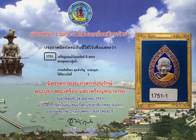 เหรียญหยดน้ำโภคทรัพย์หลวงปู่คร่ำเงินลงยาสีแดงแชมป์