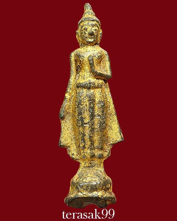 พิมพ์ยืนประทานพร เนื้อชินเงินปิดทองเดิมๆจากกรุ ความสูงประมาณ 5.0 ซม. สภาพสวยเห็นหน้าตา องค์จริงตามรูป ***รับประกันแท้ตลอดชีพและตามกฎทุกประการ***