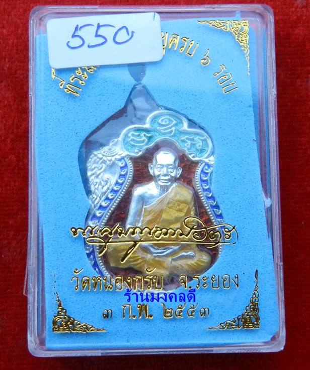 เหรียญเสมา 6 รอบ หลวงพ่อสาคร วัดหนองกรับ จ.ระยอง เนื้อเงินลงยา 4 สี เลขสวย 550 จำนวนการสร้างแค่ 1972 เหรียญ จัดสร้างขึ้นเพื่อฉลองอายุหลวงพ่อสาคร ครบ 6 รอบ พิธีพุทธาภิเษกยิ่งใหญ่ เมื่อ 3 ก.พ.53 เป็นเหรียญที่นิยมมากในขณะนี้ ใครๆก็อยากได้ไว้บูชา อนาคตน่าจะหายากครับ (สภาพสวยแชมป์ ซีลในซองพลาสติกเดิมจากวัด)