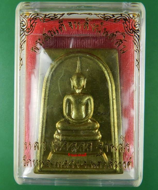 สมเด็จหลังยันต์สิบ เนื้อทองเหลือง โค๊ดพิเศษ 9999 หลวงพ่อลออ (ศิษย์หลวงพ่อพรหม วัดช่องแค) วัดหนองหลวง จ.นครสวรรค์ +พิธีพุทธาภิเษกเมื่อปี52 +จัดสร้างขึ้นเพื่อนำรายได้สมทบทุนจัดสร้างศาลาการเปรียญ และสาธารณะกุศล ณ.วัดศรีสะออาดบัวบาน บ้านบัวโคก ต.โพธิ์หมากแข้ง อ.บึงโขงหลง จ.หนองคาย จำนวนจัดสร้างทั้งหมดรวมกัน 5000 องค์ +และเนื้อนี้สร้างจำนวน 500 องค์ เพื่อถวายให้หลวงพ่อครับ ใครทำบุญกับหลวงพ่อๆ ก็จะแจกให้ +ตอกโค๊ดพิเศษเลข 9999+รอยจารจากลพ.ลออ +โค๊ด (สภาพสวย พร้อมกล่องเดิม) ++++โปรดระวังของเลียนแบบครับ++++ ประวัติหลวงพ่อลออ วัดหนองหลวง หลวงพ่อลออ วัดหนองหลวง จ.นครสวรรค์ เกจิผู้สืบสายพุทธาคม หลวงพ่อพรหม วัดช่องแค หลวงพ่อลออ ฐานวโร ตอนที่ยังเป็นฆราวาส นับว่าเป็นกรรมการรุ่นใหญ่ของวัดช่องแค เป็นหัวเรียวหัวแรงใหญ่ในการจัดสร้างเสนาสนะ และวัตถุมงคล หลายรุ่นของวัดช่องแค โดยหลวงพ่อลออ ได้รับความไว้วางใจจากหลวงพ่อพรหมให้เป็นผู้ดำเนินการจัดสร้างวัตถุมงคล เช่น รูปเหมือนปั๊มหลวงพ่อพรหม รุ่นก้นระฆัง รูปเหมือนปั๊ม เนื้อทองระฆังรุ่นต่างๆ เช่น เข่ากว้างหลังเต็ม หลังเตารีด และอีกหลายรุ่นมากมาย หลวงพ่อลออ สมัยที่ยังเป็นฆราวาส ท่านเป็นศิษย์ใกล้ชิดติดตามหลวงพ่อหรหม และได้รับการถ่ายทอดวิชาต่างๆจากหลวงพ่อพรหม ซึ่งหลวงพ่อลออ สามารถเรียนรู้ได้ทั้งหมด โดยหลวงพ่อพรหม เอ่ยปากชมว่า ต่อไปวิชาของหลวงพ่อพรหมจะตกอยู่กับหลวงพ่อลออ ซึ่งเรื่องนี้ชาวบ้านในตลาดตาคลี ซึ่งเป็นศิษย์ใกล้ชิดกับหลวงพ่อพรหมและหลวงพ่อลออ(ตอนยังไม่บวช) ได้กล่าวว่า หลวงพ่อลออ ได้ร่ำเรียนวิชามาจากหลวงพ่อพรหม ถึงแม้จะเป็นฆราวาส ก็ยังเก่งกว่าพระอาจารย์แบ๊งค์ ที่เป็นเจ้าอาวาสวัดช่องแคต่อจากหลวงพ่อพรหมเสียอีก หลวงพ่อลออ อยู่วัดหนองหลวง จ.นครสวรรค์ มาแล้ว 3 ปี แต่ก่อนท่านอยู่ที่ วัดพรหมนิมิตร จ.สระแก้ว ปัจจุบันท่านอายุ 80 ปีแล้ว มีญาติโยมมาขอให้ท่านกลับไปเป็นเจ้าอาวาสที่วัดช่องแคแต่ท่านก็ไม่ไป เพราะเหตุผลบางประการ และจากการที่ครั้งหนึ่งหลวงพ่อเดิม เคยอยู่ที่วัดหนองหลวงแห่งนี้ด้วย วัตถุมงคลบางประเภทของท่านจึงสร้างจากวัสดุที่เกี่ยวพันกับหลวงพ่อเดิม ขณะนี้วัตถุมงคลของหลวงพ่อลออ วัดหนองหลวง กำลังได้รับความนิยมของนักนิยมสะสมพระเครื่องเป็นอย่างมาก