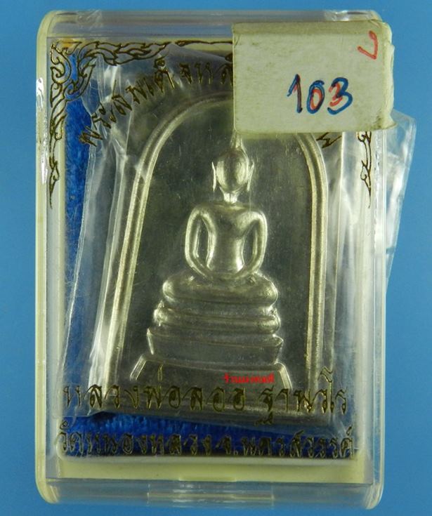 สมเด็จหลังยันต์สิบ เนื้อเงิน หมายเลข 103 หลวงพ่อลออ (ศิษย์หลวงพ่อพรหม วัดช่องแค) วัดหนองหลวง จ.นครสวรรค์ ปี52 +จัดสร้างขึ้นเพื่อนำรายได้สมทบทุนจัดสร้างศาลาการเปรียญ และสาธารณะกุศล ณ.วัดศรีสะออาดบัวบาน บ้านบัวโคก ต.โพธิ์หมากแข้ง อ.บึงโขงหลง จ.หนองคาย จำนวนจัดสร้างทั้งหมดรวมกัน 5000 องค์ +เนื้อเงินสร้างประมาณ 500 องค์ ตอกโค๊ด 2 โค๊ด +เลขรันนิ่ง 103 +รอยจารจากหลวงพ่อ (เหรียญสภาพสวย ไม่ผ่านการใช้ พร้อมกล่องเดิมจากวัดครับ) ประวัติหลวงพ่อลออ วัดหนองหลวง หลวงพ่อลออ วัดหนองหลวง จ.นครสวรรค์ เกจิผู้สืบสายพุทธาคม หลวงพ่อพรหม วัดช่องแค หลวงพ่อลออ ฐานวโร ตอนที่ยังเป็นฆราวาส นับว่าเป็นกรรมการรุ่นใหญ่ของวัดช่องแค เป็นหัวเรียวหัวแรงใหญ่ในการจัดสร้างเสนาสนะ และวัตถุมงคล หลายรุ่นของวัดช่องแค โดยหลวงพ่อลออ ได้รับความไว้วางใจจากหลวงพ่อพรหมให้เป็นผู้ดำเนินการจัดสร้างวัตถุมงคล เช่น รูปเหมือนปั๊มหลวงพ่อพรหม รุ่นก้นระฆัง รูปเหมือนปั๊ม เนื้อทองระฆังรุ่นต่างๆ เช่น เข่ากว้างหลังเต็ม หลังเตารีด และอีกหลายรุ่นมากมาย หลวงพ่อลออ สมัยที่ยังเป็นฆราวาส ท่านเป็นศิษย์ใกล้ชิดติดตามหลวงพ่อหรหม และได้รับการถ่ายทอดวิชาต่างๆจากหลวงพ่อพรหม ซึ่งหลวงพ่อลออ สามารถเรียนรู้ได้ทั้งหมด โดยหลวงพ่อพรหม เอ่ยปากชมว่า ต่อไปวิชาของหลวงพ่อพรหมจะตกอยู่กับหลวงพ่อลออ ซึ่งเรื่องนี้ชาวบ้านในตลาดตาคลี ซึ่งเป็นศิษย์ใกล้ชิดกับหลวงพ่อพรหมและหลวงพ่อลออ(ตอนยังไม่บวช) ได้กล่าวว่า หลวงพ่อลออ ได้ร่ำเรียนวิชามาจากหลวงพ่อพรหม ถึงแม้จะเป็นฆราวาส ก็ยังเก่งกว่าพระอาจารย์แบ๊งค์ ที่เป็นเจ้าอาวาสวัดช่องแคต่อจากหลวงพ่อพรหมเสียอีก หลวงพ่อลออ อยู่วัดหนองหลวง จ.นครสวรรค์ มาแล้ว 3 ปี แต่ก่อนท่านอยู่ที่ วัดพรหมนิมิตร จ.สระแก้ว ปัจจุบันท่านอายุ 80 ปีแล้ว มีญาติโยมมาขอให้ท่านกลับไปเป็นเจ้าอาวาสที่วัดช่องแคแต่ท่านก็ไม่ไป เพราะเหตุผลบางประการ และจากการที่ครั้งหนึ่งหลวงพ่อเดิม เคยอยู่ที่วัดหนองหลวงแห่งนี้ด้วย วัตถุมงคลบางประเภทของท่านจึงสร้างจากวัสดุที่เกี่ยวพันกับหลวงพ่อเดิม ขณะนี้วัตถุมงคลของหลวงพ่อลออ วัดหนองหลวง กำลังได้รับความนิยมของนักนิยมสะสมพระเครื่องเป็นอย่างมาก ทางศูนย์พุทธชัยมงคล รับประกันพระแท้ให้ตลอดชีพครับ