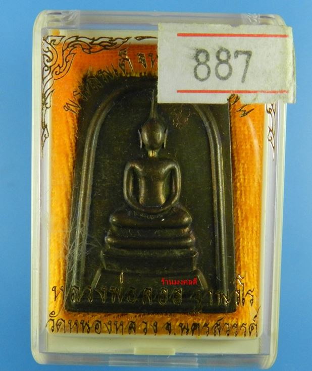 สมเด็จหลังยันต์สิบ เนื้อนวโลหะ (ผิวกลับดำสวยมาก) หมายเลข 887 หลวงพ่อลออ (ศิษย์หลวงพ่อพรหม วัดช่องแค) วัดหนองหลวง จ.นครสวรรค์ ปี52 +จัดสร้างขึ้นเพื่อนำรายได้สมทบทุนจัดสร้างศาลาการเปรียญ และสาธารณะกุศล ณ.วัดศรีสะออาดบัวบาน บ้านบัวโคก ต.โพธิ์หมากแข้ง อ.บึงโขงหลง จ.หนองคาย จำนวนจัดสร้างทั้งหมดรวมกัน 5000 องค์ +เนื้อนวโลหะสร้างจำนวน 1000 องค์ +ตอกโค๊ด 2 โค๊ด +เลข 887+รอยจารจากลพ.ลออ (สภาพสวย ไม่ผ่านการใช้ พร้อมกล่องเดิมจากวัด) ประวัติหลวงพ่อลออ วัดหนองหลวง หลวงพ่อลออ วัดหนองหลวง จ.นครสวรรค์ เกจิผู้สืบสายพุทธาคม หลวงพ่อพรหม วัดช่องแค หลวงพ่อลออ ฐานวโร ตอนที่ยังเป็นฆราวาส นับว่าเป็นกรรมการรุ่นใหญ่ของวัดช่องแค เป็นหัวเรียวหัวแรงใหญ่ในการจัดสร้างเสนาสนะ และวัตถุมงคล หลายรุ่นของวัดช่องแค โดยหลวงพ่อลออ ได้รับความไว้วางใจจากหลวงพ่อพรหมให้เป็นผู้ดำเนินการจัดสร้างวัตถุมงคล เช่น รูปเหมือนปั๊มหลวงพ่อพรหม รุ่นก้นระฆัง รูปเหมือนปั๊ม เนื้อทองระฆังรุ่นต่างๆ เช่น เข่ากว้างหลังเต็ม หลังเตารีด และอีกหลายรุ่นมากมาย หลวงพ่อลออ สมัยที่ยังเป็นฆราวาส ท่านเป็นศิษย์ใกล้ชิดติดตามหลวงพ่อหรหม และได้รับการถ่ายทอดวิชาต่างๆจากหลวงพ่อพรหม ซึ่งหลวงพ่อลออ สามารถเรียนรู้ได้ทั้งหมด โดยหลวงพ่อพรหม เอ่ยปากชมว่า ต่อไปวิชาของหลวงพ่อพรหมจะตกอยู่กับหลวงพ่อลออ ซึ่งเรื่องนี้ชาวบ้านในตลาดตาคลี ซึ่งเป็นศิษย์ใกล้ชิดกับหลวงพ่อพรหมและหลวงพ่อลออ(ตอนยังไม่บวช) ได้กล่าวว่า หลวงพ่อลออ ได้ร่ำเรียนวิชามาจากหลวงพ่อพรหม ถึงแม้จะเป็นฆราวาส ก็ยังเก่งกว่าพระอาจารย์แบ๊งค์ ที่เป็นเจ้าอาวาสวัดช่องแคต่อจากหลวงพ่อพรหมเสียอีก หลวงพ่อลออ อยู่วัดหนองหลวง จ.นครสวรรค์ มาแล้ว 3 ปี แต่ก่อนท่านอยู่ที่ วัดพรหมนิมิตร จ.สระแก้ว ปัจจุบันท่านอายุ 80 ปีแล้ว มีญาติโยมมาขอให้ท่านกลับไปเป็นเจ้าอาวาสที่วัดช่องแคแต่ท่านก็ไม่ไป เพราะเหตุผลบางประการ และจากการที่ครั้งหนึ่งหลวงพ่อเดิม เคยอยู่ที่วัดหนองหลวงแห่งนี้ด้วย วัตถุมงคลบางประเภทของท่านจึงสร้างจากวัสดุที่เกี่ยวพันกับหลวงพ่อเดิม ขณะนี้วัตถุมงคลของหลวงพ่อลออ วัดหนองหลวง กำลังได้รับความนิยมของนักนิยมสะสมพระเครื่องเป็นอย่างมาก