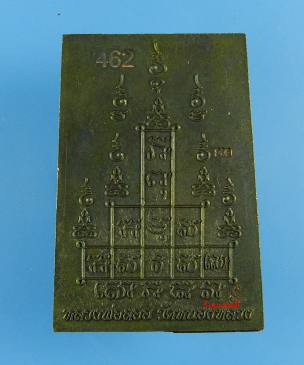 สมเด็จหลังยันต์สิบ เนื้อนวโลหะ (ผิวกลับดำสวยมาก) หมายเลข 462 หลวงพ่อลออ (ศิษย์หลวงพ่อพรหม วัดช่องแค) วัดหนองหลวง จ.นครสวรรค์ ปี52 +จัดสร้างขึ้นเพื่อนำรายได้สมทบทุนจัดสร้างศาลาการเปรียญ และสาธารณะกุศล ณ.วัดศรีสะออาดบัวบาน บ้านบัวโคก ต.โพธิ์หมากแข้ง อ.บึงโขงหลง จ.หนองคาย จำนวนจัดสร้างทั้งหมดรวมกัน 5000 องค์ +เนื้อนวโลหะสร้างจำนวน 1000 องค์ +ตอกโค๊ด +เลข 462+รอยจารจากลพ.ลออ (สภาพสวย ไม่ผ่านการใช้ พร้อมกล่องเดิมจากวัด) ประวัติหลวงพ่อลออ วัดหนองหลวง หลวงพ่อลออ วัดหนองหลวง จ.นครสวรรค์ เกจิผู้สืบสายพุทธาคม หลวงพ่อพรหม วัดช่องแค หลวงพ่อลออ ฐานวโร ตอนที่ยังเป็นฆราวาส นับว่าเป็นกรรมการรุ่นใหญ่ของวัดช่องแค เป็นหัวเรียวหัวแรงใหญ่ในการจัดสร้างเสนาสนะ และวัตถุมงคล หลายรุ่นของวัดช่องแค โดยหลวงพ่อลออ ได้รับความไว้วางใจจากหลวงพ่อพรหมให้เป็นผู้ดำเนินการจัดสร้างวัตถุมงคล เช่น รูปเหมือนปั๊มหลวงพ่อพรหม รุ่นก้นระฆัง รูปเหมือนปั๊ม เนื้อทองระฆังรุ่นต่างๆ เช่น เข่ากว้างหลังเต็ม หลังเตารีด และอีกหลายรุ่นมากมาย หลวงพ่อลออ สมัยที่ยังเป็นฆราวาส ท่านเป็นศิษย์ใกล้ชิดติดตามหลวงพ่อหรหม และได้รับการถ่ายทอดวิชาต่างๆจากหลวงพ่อพรหม ซึ่งหลวงพ่อลออ สามารถเรียนรู้ได้ทั้งหมด โดยหลวงพ่อพรหม เอ่ยปากชมว่า ต่อไปวิชาของหลวงพ่อพรหมจะตกอยู่กับหลวงพ่อลออ ซึ่งเรื่องนี้ชาวบ้านในตลาดตาคลี ซึ่งเป็นศิษย์ใกล้ชิดกับหลวงพ่อพรหมและหลวงพ่อลออ(ตอนยังไม่บวช) ได้กล่าวว่า หลวงพ่อลออ ได้ร่ำเรียนวิชามาจากหลวงพ่อพรหม ถึงแม้จะเป็นฆราวาส ก็ยังเก่งกว่าพระอาจารย์แบ๊งค์ ที่เป็นเจ้าอาวาสวัดช่องแคต่อจากหลวงพ่อพรหมเสียอีก หลวงพ่อลออ อยู่วัดหนองหลวง จ.นครสวรรค์ มาแล้ว 3 ปี แต่ก่อนท่านอยู่ที่ วัดพรหมนิมิตร จ.สระแก้ว ปัจจุบันท่านอายุ 80 ปีแล้ว มีญาติโยมมาขอให้ท่านกลับไปเป็นเจ้าอาวาสที่วัดช่องแคแต่ท่านก็ไม่ไป เพราะเหตุผลบางประการ และจากการที่ครั้งหนึ่งหลวงพ่อเดิม เคยอยู่ที่วัดหนองหลวงแห่งนี้ด้วย วัตถุมงคลบางประเภทของท่านจึงสร้างจากวัสดุที่เกี่ยวพันกับหลวงพ่อเดิม ขณะนี้วัตถุมงคลของหลวงพ่อลออ วัดหนองหลวง กำลังได้รับความนิยมของนักนิยมสะสมพระเครื่องเป็นอย่างมาก ทางศูนย์พุทธชัยมงคล รับประกันพระแท้ตลอดชีพครับ