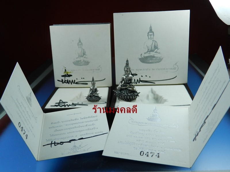 พระกริ่งพระพุทธประทานยศ บารมี เนื้อเงิน พิมพ์ใหญ่หน้าตัก 2 ซม สูง ประมาณ 4 ซม.ส่วนพิมพ์เล็ก หน้าตัก 1 ซม ผ่านพิธีพุทธาภิเษกอันยิ่งใหญ่ 9 ครั้ง ณ.สถานที่ศักดิ์ โดยพระเกจิย์คณาจารย์หลายรูป ปี52 +ได้รับออกแบบและควบคุมโดย อาจารย์เฉลิมชัย โฆษิตพิพัฒน์ ศิลปินแห่งชาติสาขาจิตรกรรม พระกริ่งประทานยศบารมี ทั้งคู่มีเลขรันนิ่ง ๔๗๔ และโค๊ด สภาพสวยพร้อมกล่องเดิม มาพร้อมใบเซอร์หมายเลขประจำองค์พระเลข ๔๗๔ เลข 3 หลัก เลขมงคลมาก รวมกันได้ 15 ตามหลักเลขมหาทักษา 15 เป็นเลขแห่งความมีเสน่ห์ เมตตามหานิยม ใครเห็นใครรักแอ็นดู และ 1+5 เลขปห่งศุภโชคโภคทรัพย์ เลขแบบนี้หาไม่ได้ง่ายๆ มีคู่เดียวในโลกครับ*** +พร้อมมมีลายเซ็นต์ของอาจารย์เฉลิมชัย 3 จุด แบบนี้ ห้ามพลาดครับ***