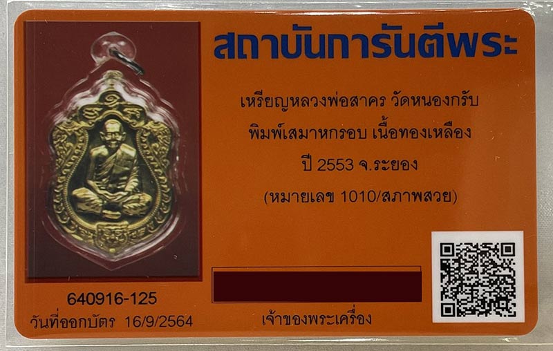 เหรียญเสมา6รอบ ลพ.สาคร วัดหนองกรับ เนื้อทองระฆัง หมายเลข ๑๐๑๐ มาพร้อมบัตรรับรอง"สภาพสวย"สมบูรณ์สุดๆจมูกโด่งๆ สวยมากๆครับท่านพระเก็บเก่าเพิ่งเอามาถ่ายรูป พร้อมกล่องเดิมๆครับท่าน