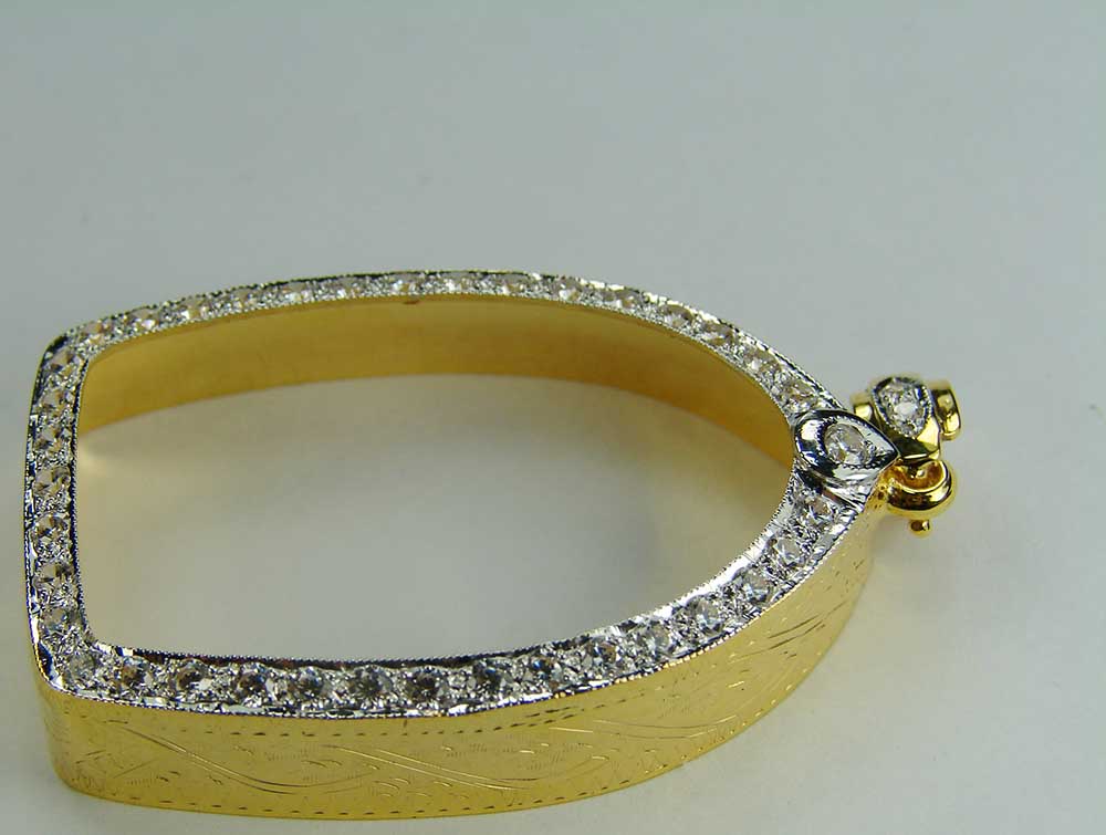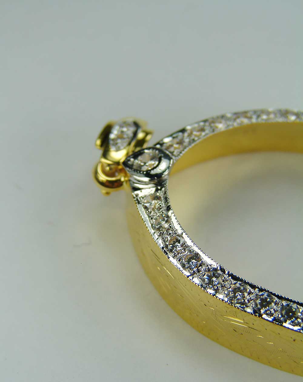กรอบทองฝังเพชร ชุบหน้าขาว หูเพชร ( CZ 40 เม็ด ตรง