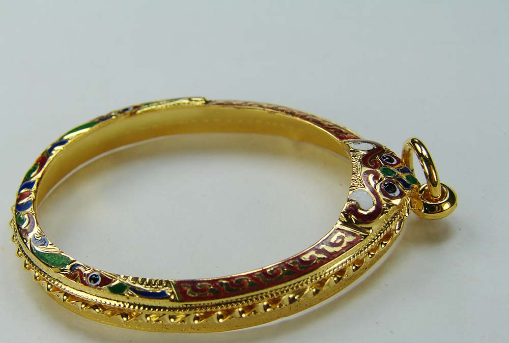 กรอบทอง ยกซุ้มหัวสิงห์ใหญ่ ลงยาล้อม ด้านข้างแกะลาย