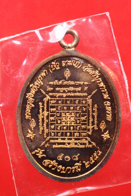 เหรียญหลวงปู่บัว วัดศรีบุรพาราม พิมพ์ห่วงเชื่อม เนื้อนวโลหะ ปี 2554 จ.ตราด