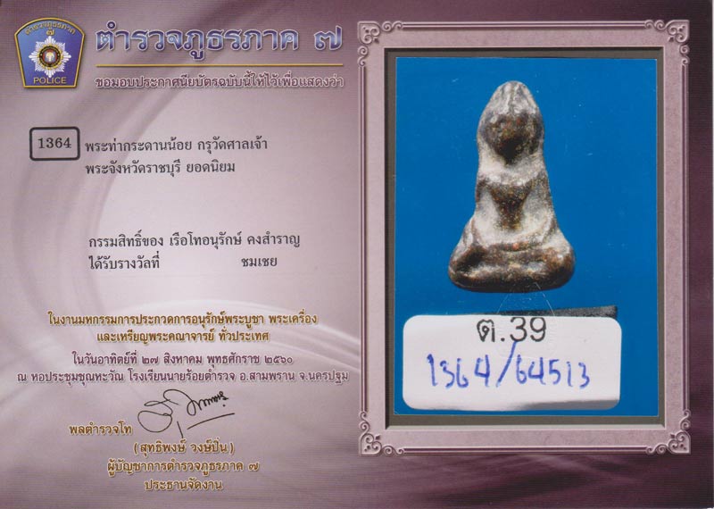 กรุศาลเจ้า จังหวัดราชบุรี เนื้อชินตะกั่ว (สนิมแดง) รางวัลที่ 4 งานตำรวจภูธรภาค 7 วันที่ 27 ส.ค. 60 ที่โรงเรียนนายร้อยตำรวจ อ.สามพราน จ.นครปฐม