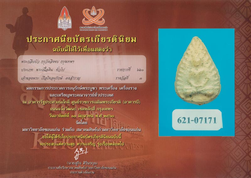 พิมพ์เล็ก วัดบวรมงคล (วัดลิงขบ) จังหวัด กรุงเทพฯ รางวัลที่ 3 จัดโดยมหาวิทยาลัยขอนแก่นร่วมกับสมาคมศิกษ์เก่ามหาวิทยาลัยขอนแก่น วันที่ 11 มิ.ย. 60 ณ ศูนย์ราชการแจ้งวัฒนะ