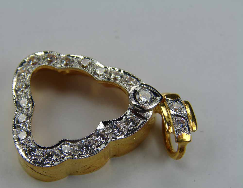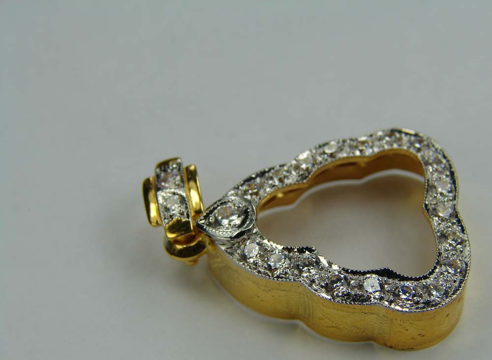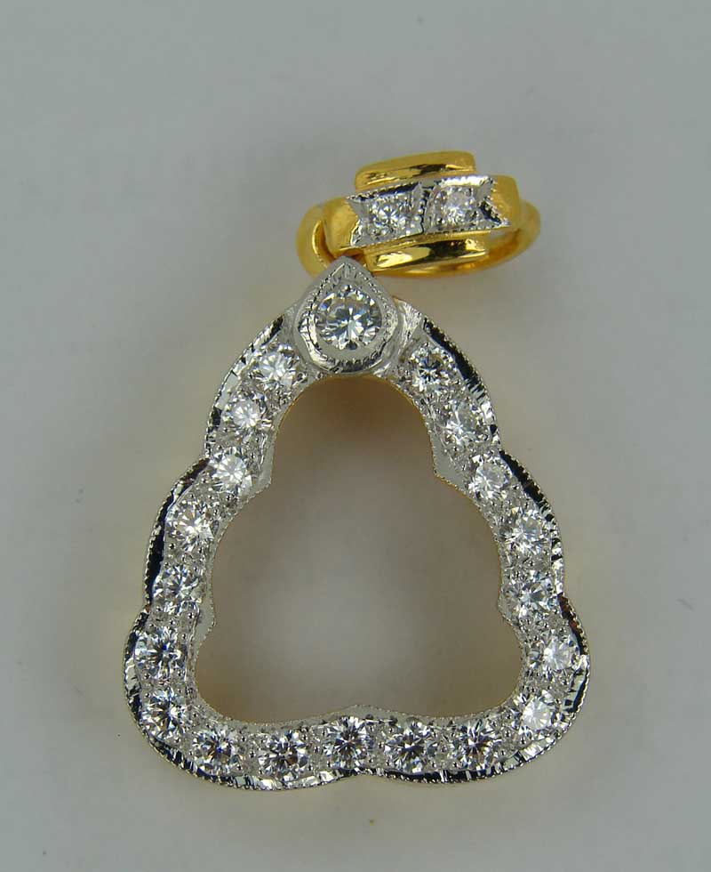 กรอบทองฝังเพชรเต็ม ห่วงฝังเพชร ด้านข้างแกะลาย ( เ
