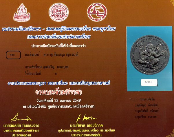 ชื่อพระ   พระพิฆเนศร์ราหูครูบาดวงดีฝังตะกรุดทองคำองค์ที่2