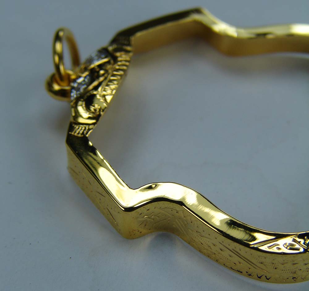 กรอบทอง ยกซุ้ม หัวสิงห์ ตาเพชร หน้าปัดเงา ข้างแกะล