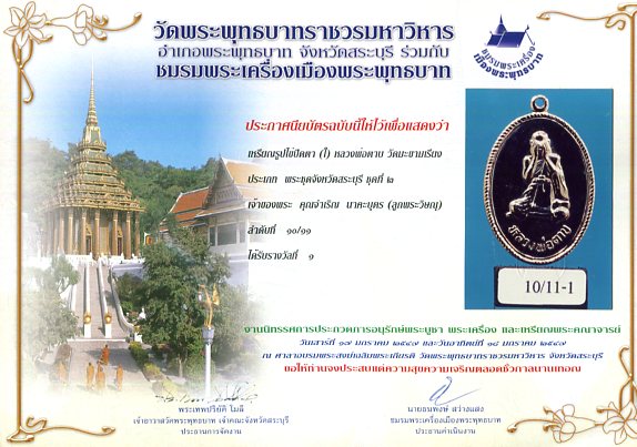 | พร้อมใบประกาศแชมป์\r\nสร้างปี2528 จำนวน 20,000 องค์\r\n6เมษายน2561 พระยังอยูครับ |