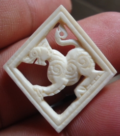 สิงห์งาแกะ หลวงพ่อเดิม วัดหนองโพ ศิลป์กรอบกระจก ข้าวหลามตัด งาขาวๆ อวบๆ