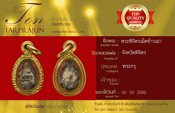 พระเม็ดข้าวเม่า จังหวัดพิจิตร สายเหนียวนักเลงสมัยเก่านิยมมาก พร้อมบัตรรับรอง