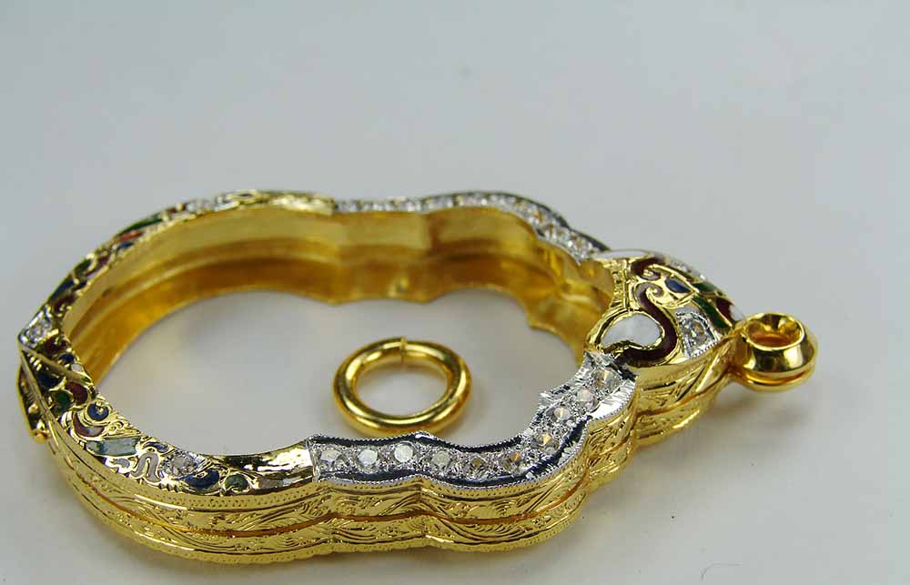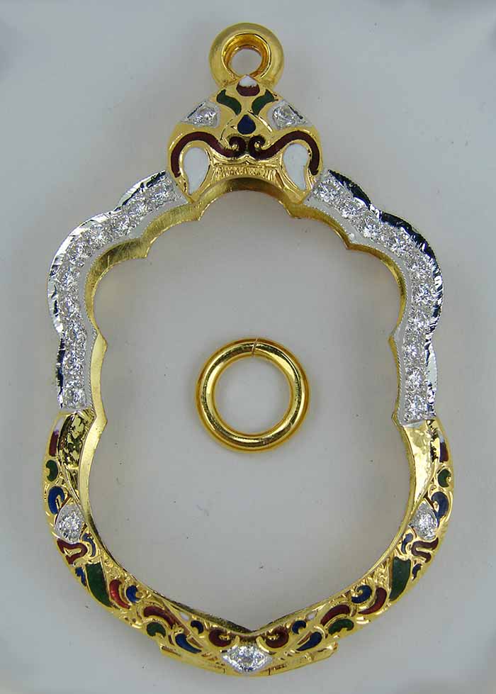 ตลับกรอบทองฝังเพชร ลงยา ใส่เหรียญเสมา 8 รอบ หลวงปู