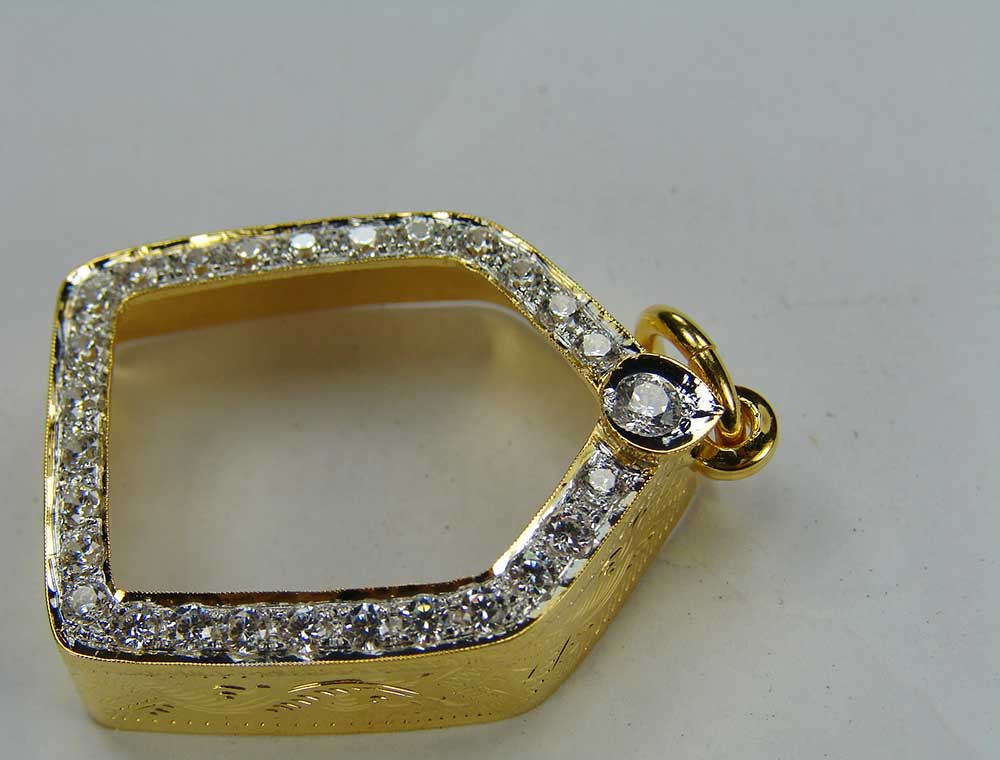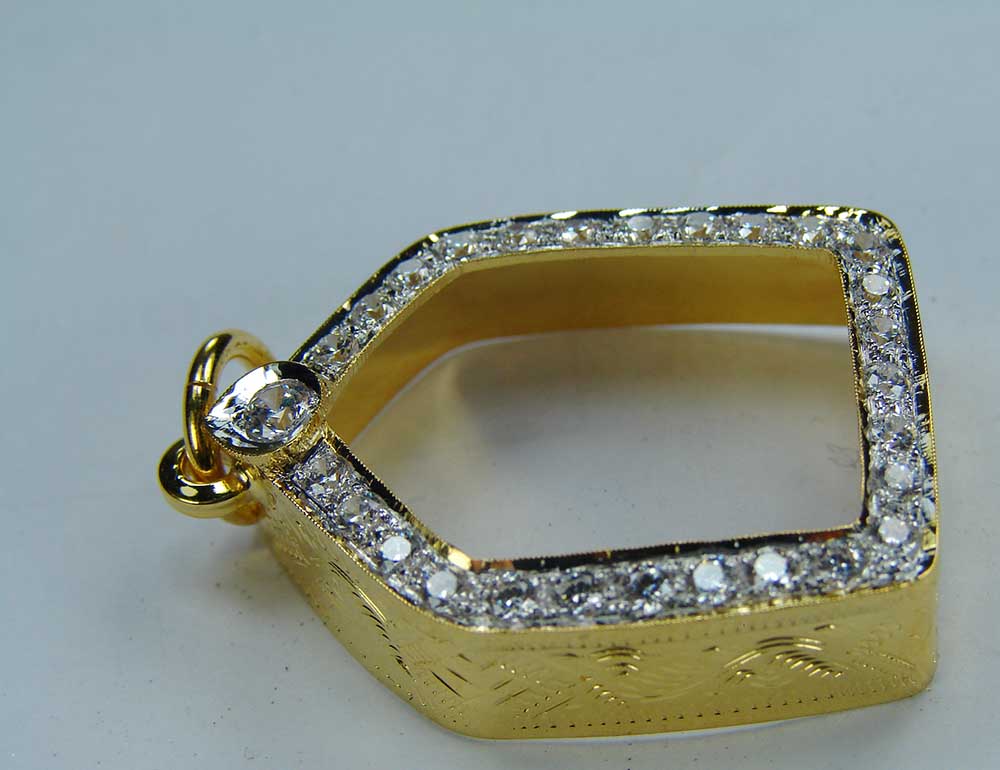 กรอบทองคำ ล้อมเพชร CZ ข้างแกะลาย ใส่ พระขุนแผน**พิ