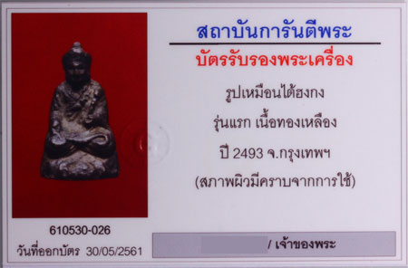 ----รูปเหมือนไต้ฮงกง รุ่นแรก เนื้อทองเหลือง ปี2493