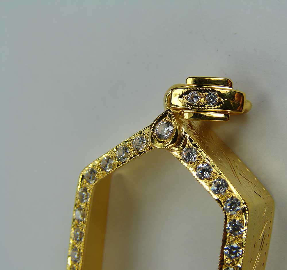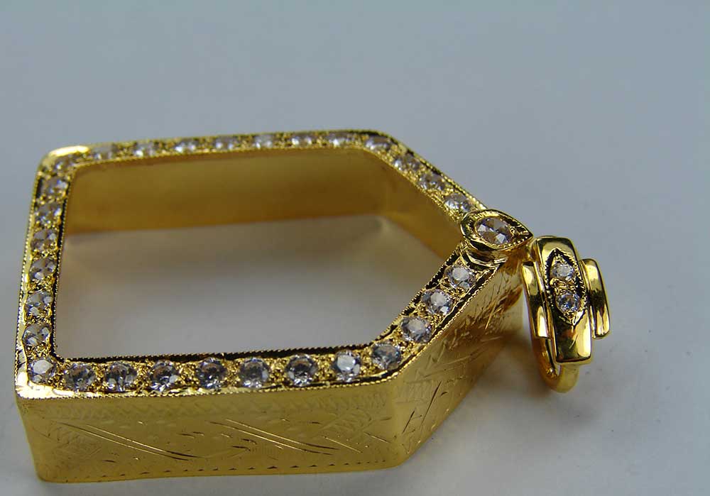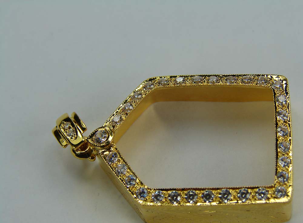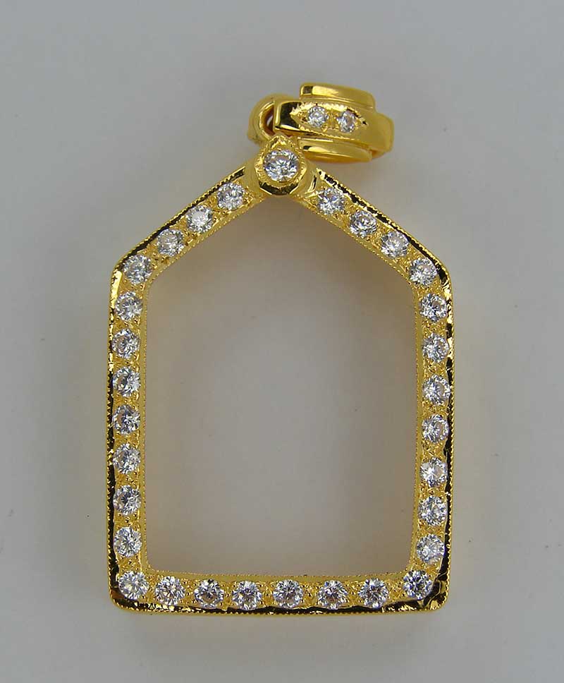กรอบทองคำ ล้อมเพชร CZ หูเพชร ข้างแกะลาย ใส่ พระขุน