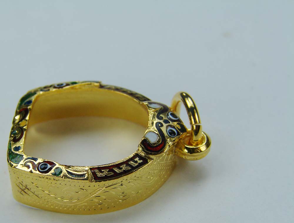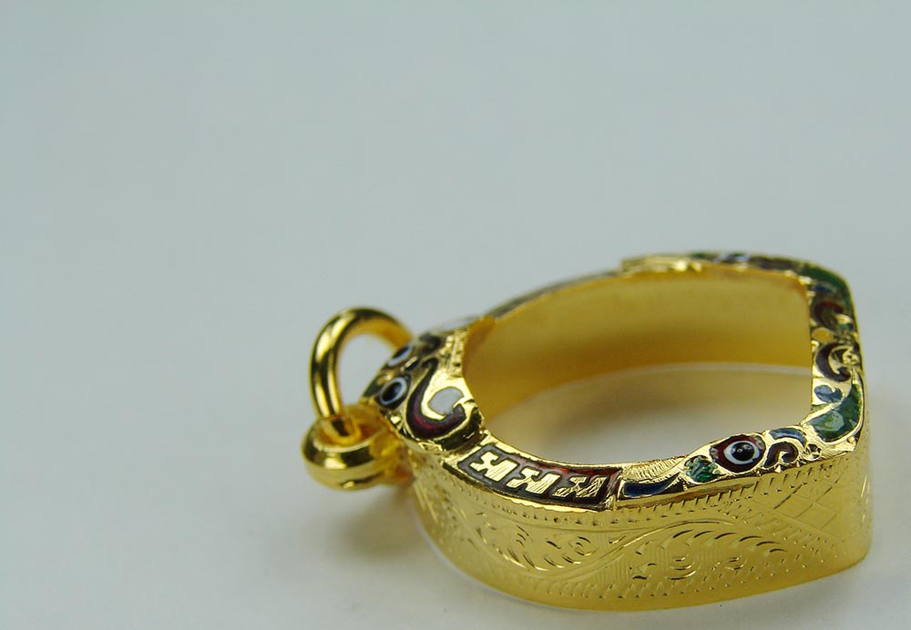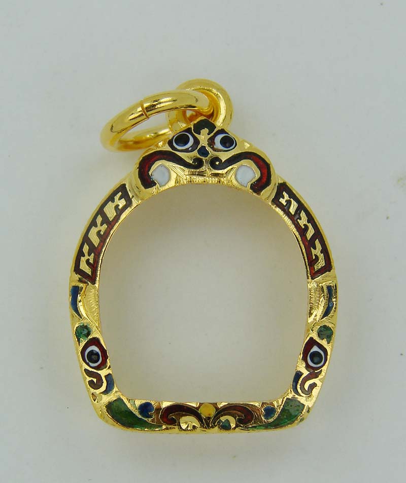 กรอบทอง ยกซุ้ม หัวสิงห์ ลงยาเต็ม ข้างแกะลาย ใส่ พร