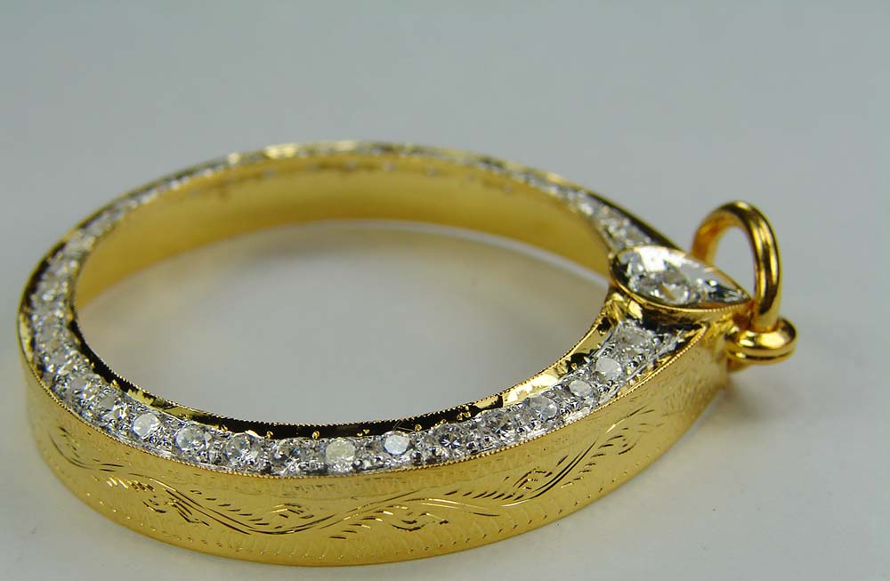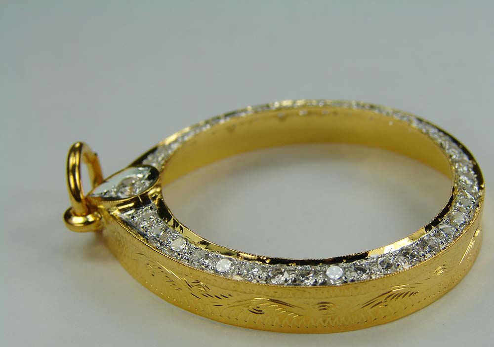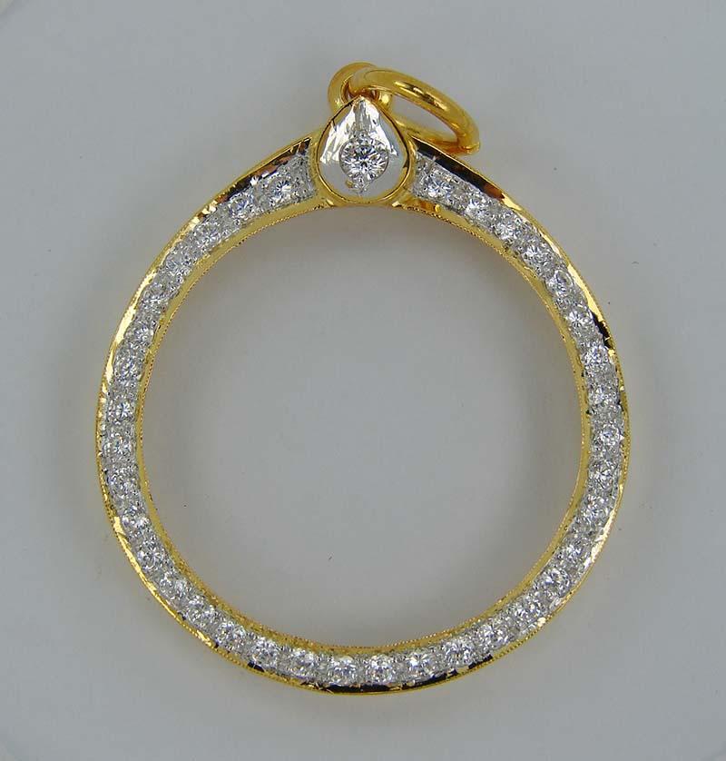 กรอบทองคำ ล้อมเพชร ทรงกลม ขนาด เส้นผ่าศูนย์ กลาง