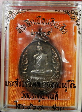 เป็นเหรียญที่ระลึกเนื่องในโอกาสที่หลวงปู่ได้เดินทางไปประเทศอินเดีย ด้านหลังเป็นรูปเจดีย์ที่พุทธคยา เพื่อเป็นอนุสรณ์ว่า ครั้งหนึ่งหลวงปู่ได้เดินทางไปสักการะสังเวชนียสถานอันศักดิ์สิทธิ์แห่งนี้ ***เหรียญเยือนอินเดียเนื้อเงิน แบ่งออกเป็น2บล็อก บล็อกที่ 1.พบเห็นกันมากที่สุดคือบล็อกพื้นผิวไม่เรียบ ตามพื้นผิวจะมีเส้นจากการแกะแม่พิมพ์ให้เห็นจำนวนมากไข้วกันไปมาอย่างชัดเจน ซึ่งพบมากในเนื้อทองคำบางคนจึงเข้าใจว่าเป็นบล็อกทองคำ ซึ่งเป็นความเข้าใจที่ผิดเนื่องจากเนื้อทองคำจะกระจายบล็อกปั๊มทุกบล็อก ส่วนด้านหลังมีรอยจมคล้ายปีกกาหน้าตัวหนังสือแถวล่างบ้าง ไม่มีบ้าง เพราะด้านหลังเองก็มีหลายบล็อก ( แยก "เก๊-แท้" จึงต้องดูจากรอยตัดขอบเหรียญ ) บล็อกที่ 2. เป็นบล็อกพื้นผิวตึงขึ้นมา แต่จะมีเส้นคล้ายเม็ดฝนตกลงมาเป็นแถวเป็นแนวยาวในแนวดิ่งตามพื้นเหรียญ และด้านหลังจะมีรอยจมคล้ายปีกกาหน้าตัวหนังสือแถวล่าง พบบล็อกนี้ใช้ปั๊มมากที่สุดคือเนื้อนาก เนื้อทองคำพบเห็นน้อย (ส่วนอีกบล็อกที่พบมากในเนื้อทองแดง เนื้อเงิน"จะไม่มี" คือบล็อกพื้นผิวเรียบมีเส้นแตกเข่าด้านขวามือเราวิ่งไปหาดอกจันด้านที่ตอกโค้ด บล็อกนี้พบมากในเนื้อทองแดงรมดำ และนวโลหะ)................. เหรียญที่นำลงในชมรมเป็นเหรียญเนื้อเงิน สภาพสวยมาก ใบหน้าหลวงปู่ชัด เห็นดวงตาชัด จมูกโด่งมากๆ ริมฝีปากชัดเจน ไม่มีรอยขูดขีดตามใบหน้าของหลวงปู่ สร้างเพียง 1,000 เหรียญ ***รับประกันเหรียญผิวเดิม 100% ผิวไม่เสียจากการสัมผัส ไม่มีสนิมเขียว ไม่ผ่านการล้างผิว หรือลงแปรงขัด (เหรียญเนื้อเงินส่วนใหญ่ที่พบจะเจอแต่เหรียญล้างผิว มีรอยแปรงขัดตามพื้นเหรียญ แต่เหรียญนี้ผิวเดิม 100% ) ตามพื้นผิวเหรียญยังมีผิวคล้ายคราบน้ำทอง คลุมอยู่ทั่วเหรียญ