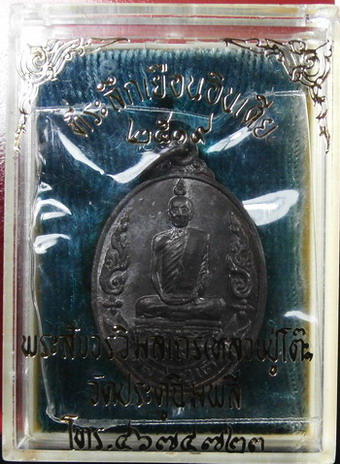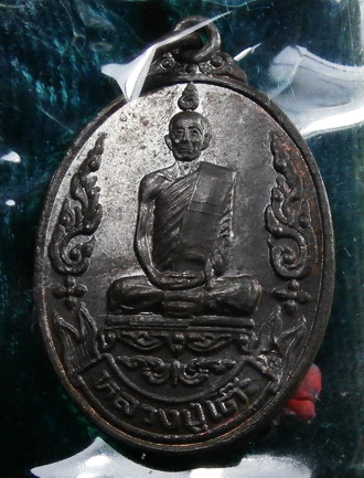 .........เหรียญที่นำลงในชมรมเป็นเนื้อนวโลหะ สภาพสวย ใบหน้าหลวงปู่ชัดเจนมาก เห็นดวงตาชัด ริมฝีปากชัด จมูกโด่งสวยมาก ไม่มีรอยขูดขีดตามใบหน้าของหลวงปู่ ตอกโค้ด "ต" ในโบว์ สร้างจำนวนเพียง 2,000 เหรียญ ยังมีผิวคล้ายผิวปรอทคลุมอยู่ทั่วผิวเหรียญ .............( เหรียญรุ่นนี้สร้างด้วยเนื้อนวโลหะน้อยมาก เสมาหลังพัดยศ ปี 2518 สร้างนวโลหะ 6,000 เหรียญ ,รูปไข่หลังพัดยศสร้างนวโลหะ 10,000 เหรียญเยือนอินเดียนวโลหะสร้างเพียง 2,000 เหรียญเท่านั้น ) |