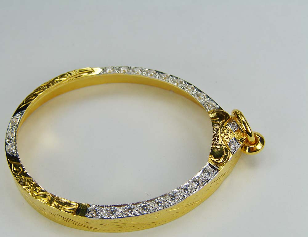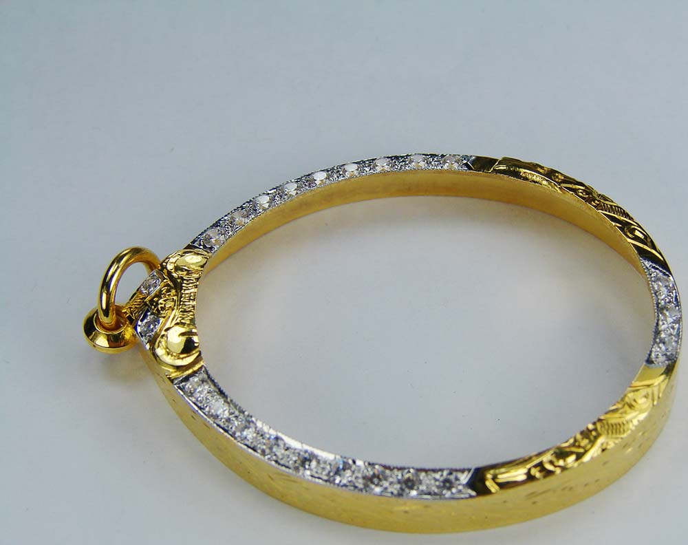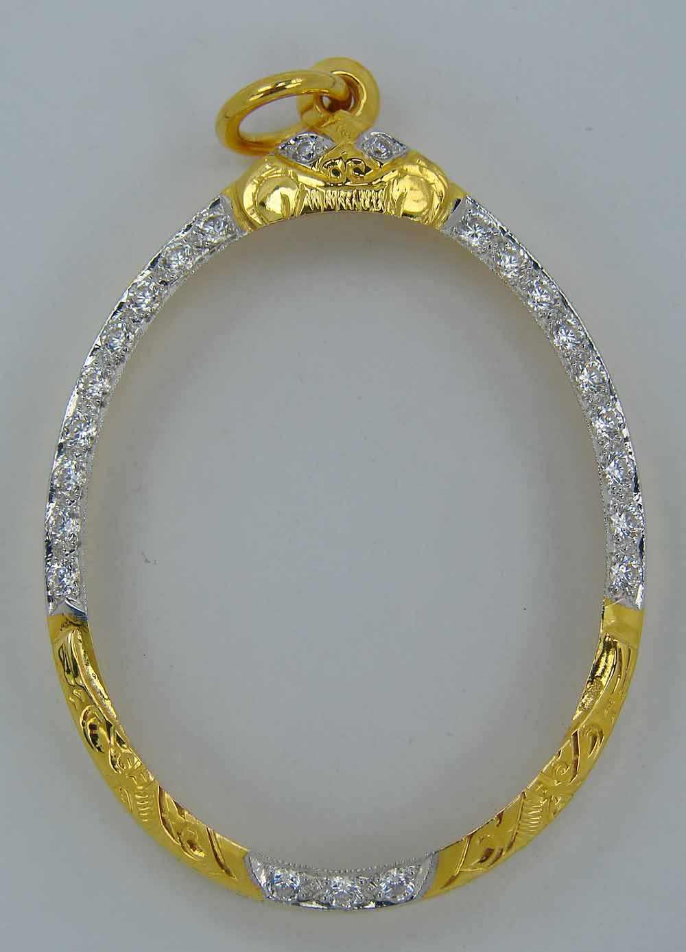 กรอบทองคำ เหรียญรูปไข่ ยกซุ้มหัวสิงห์ ฝังเพชร ข้า