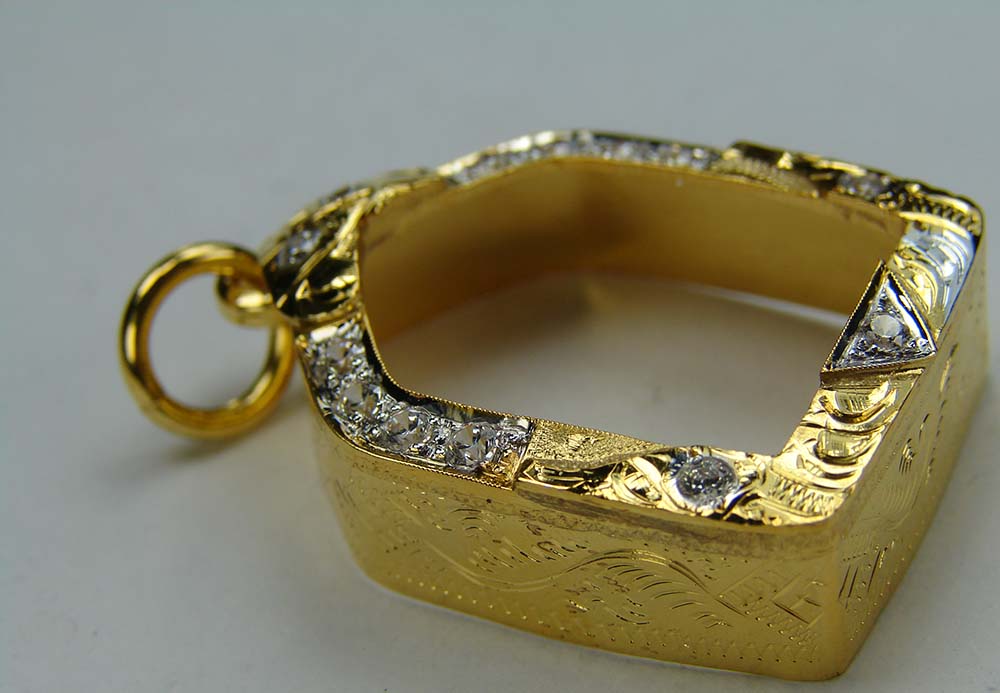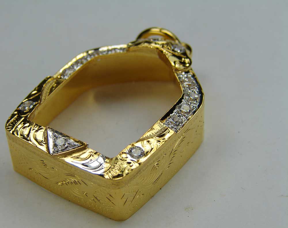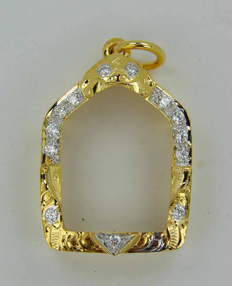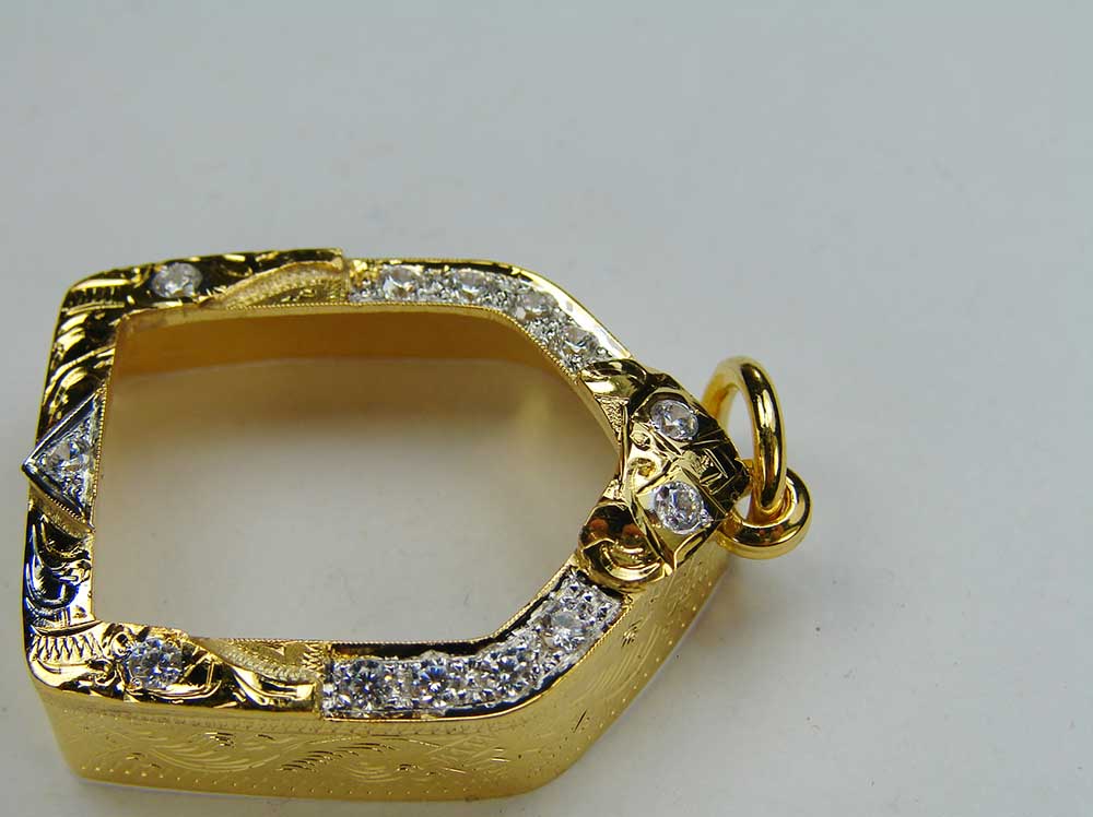 กรอบทองคำ ล้อมเพชร CZ ข้างแกะลาย ใส่ พระขุนแผน**พิ