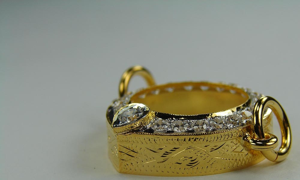กรอบทองคำ ล้อมเพชร ทรงกลม ( แบบ 3 ห่วง ) ขนาด เส้น
