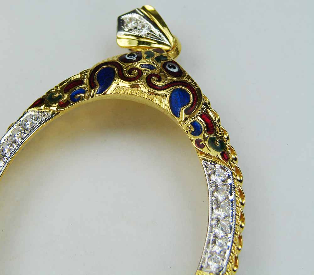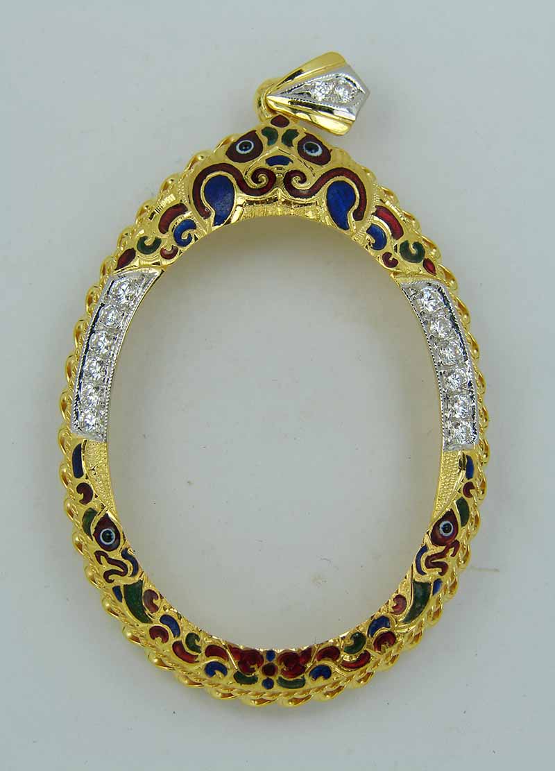 กรอบทองฝังเพชร ห่วงฝังเพชร ลงยายกซุ้ม หัวสิงห์ ด้