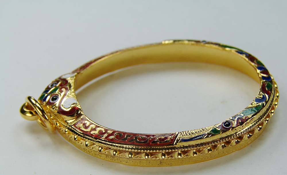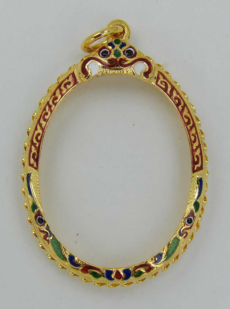 กรอบทอง ยกซุ้มหัวสิงห์ใหญ่ ลงยาล้อม ด้านข้างแกะลาย