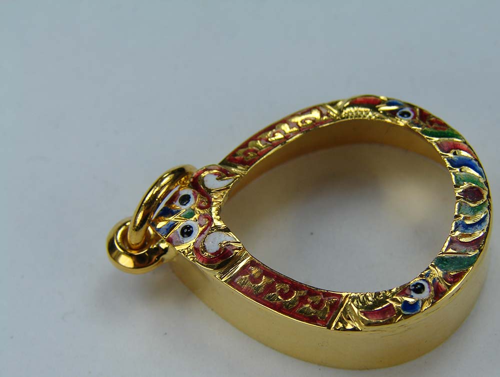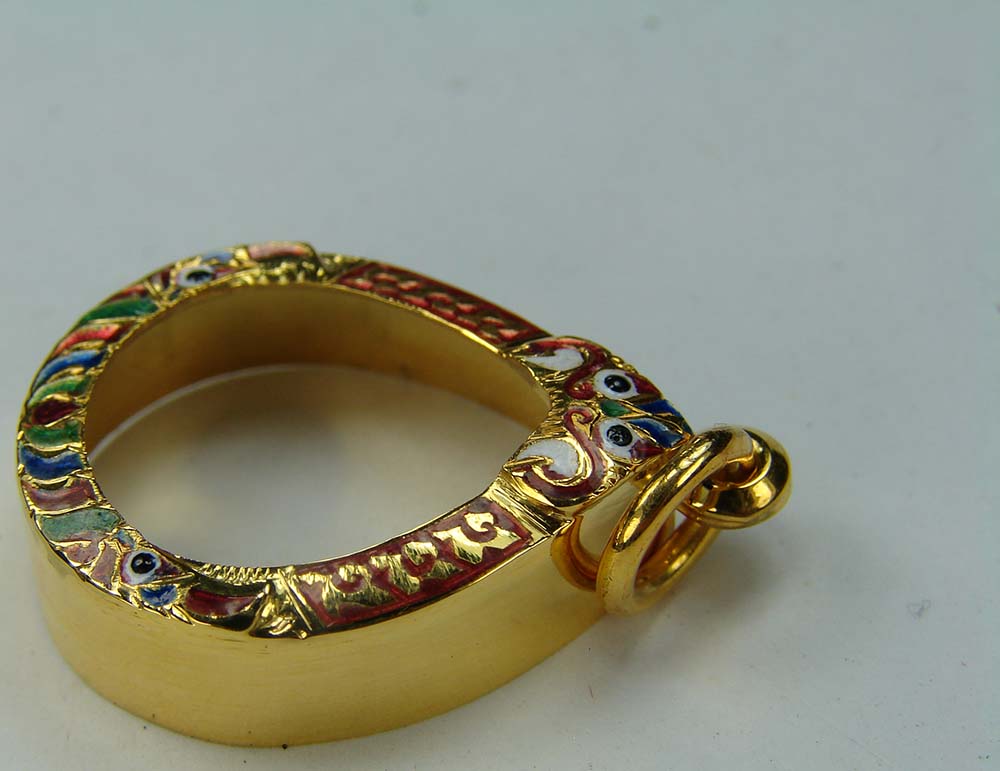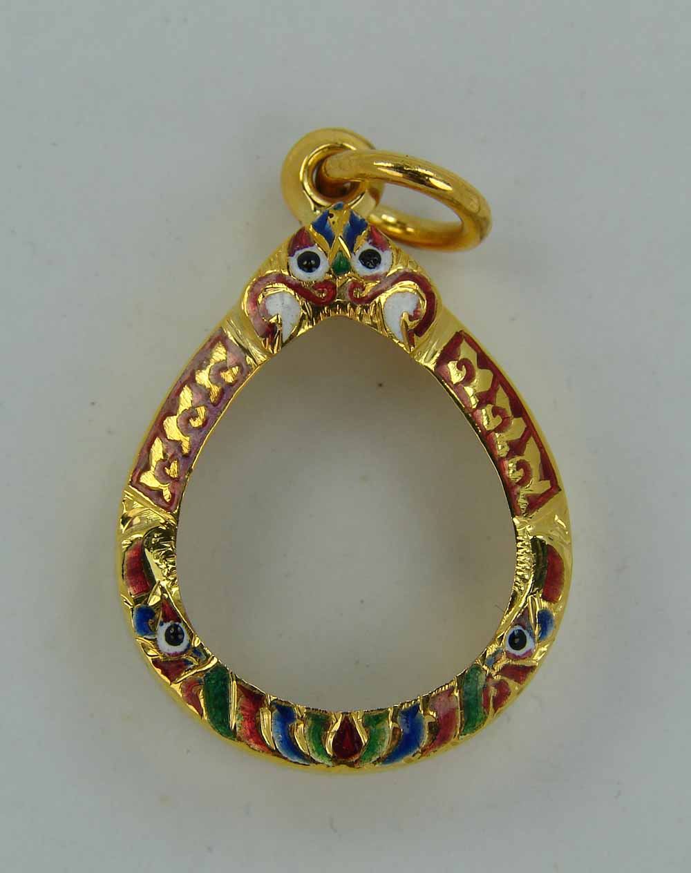 กรอบทองทรงหยดน้ำ ลงยา ยกซุ้ม หัวสิงห์ ข้างปัดเงา