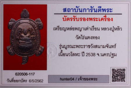 --เหรียญหล่อพญาเต่าเรือน หลวงปู่หลิว วัดไร่แตงทอง