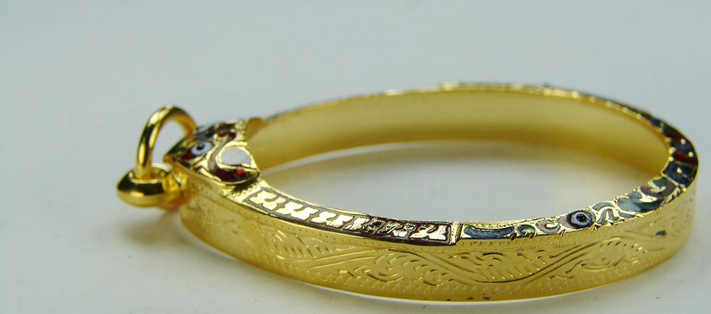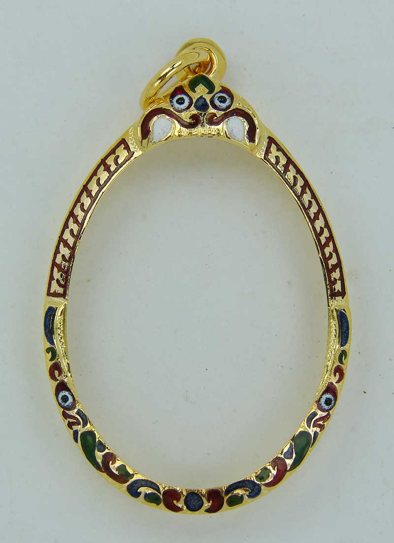 กรอบทอง ยกซุ้มหัวสิงห์ ลงยาล้อม ด้านข้างแกะลาย ใส