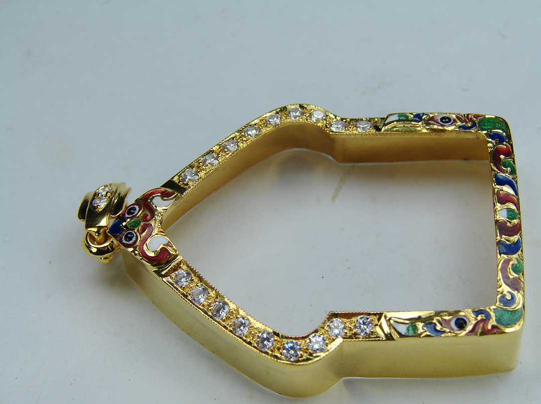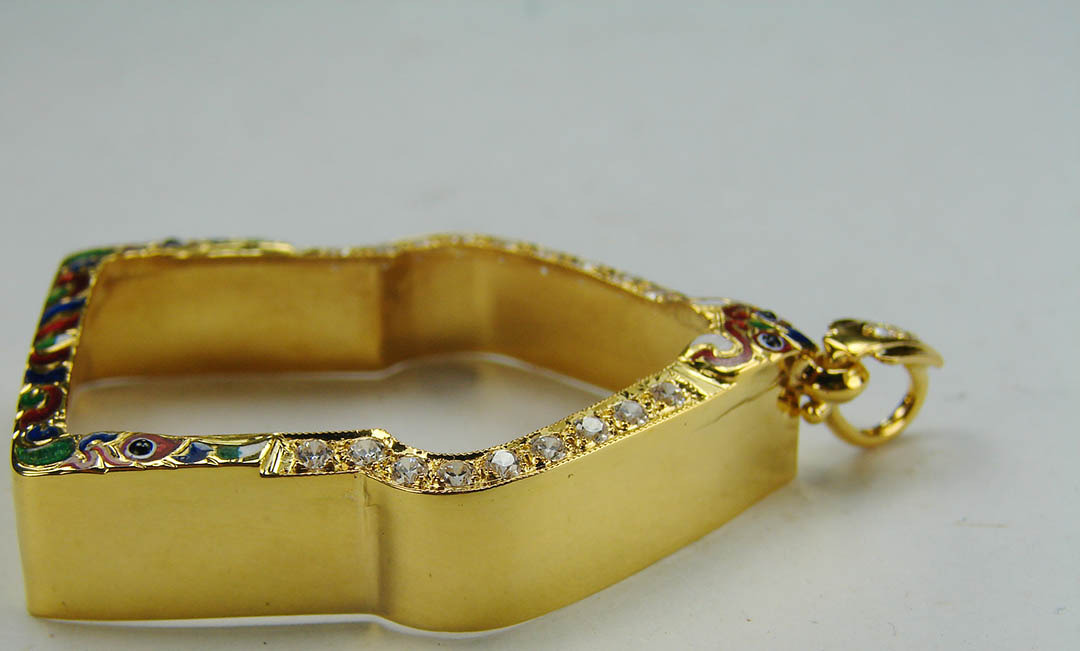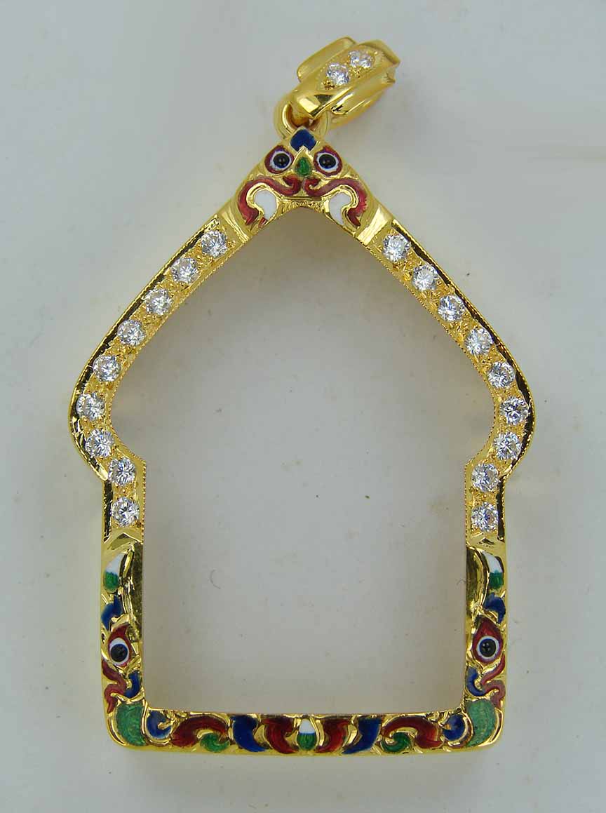 กรอบทองคำ ฝังเพชร หูเพชร ลงยา ข้างปัดเงา*** ใส่ พ