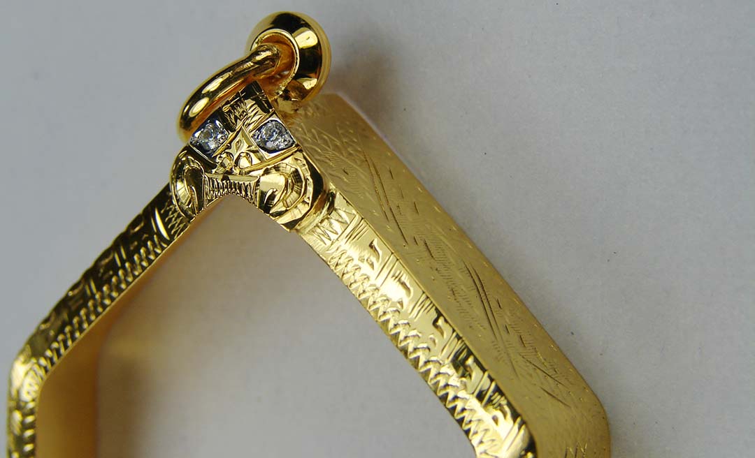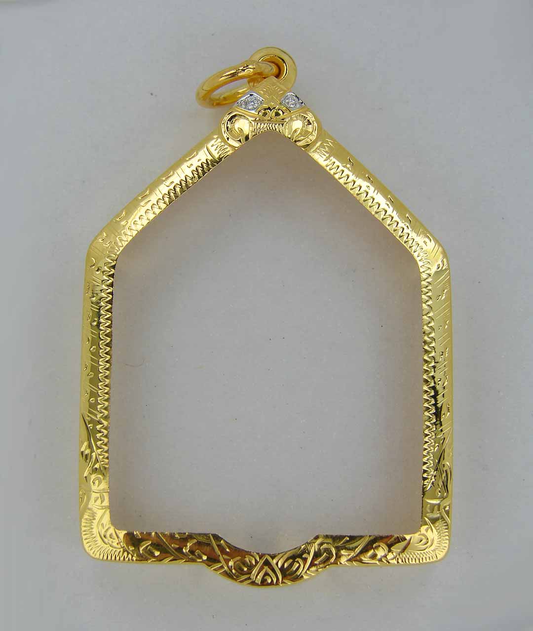 กรอบทอง **ยกซุ้ม หัวสิงห์ ตาฝังเพชร CZ*** ข้างแกะล
