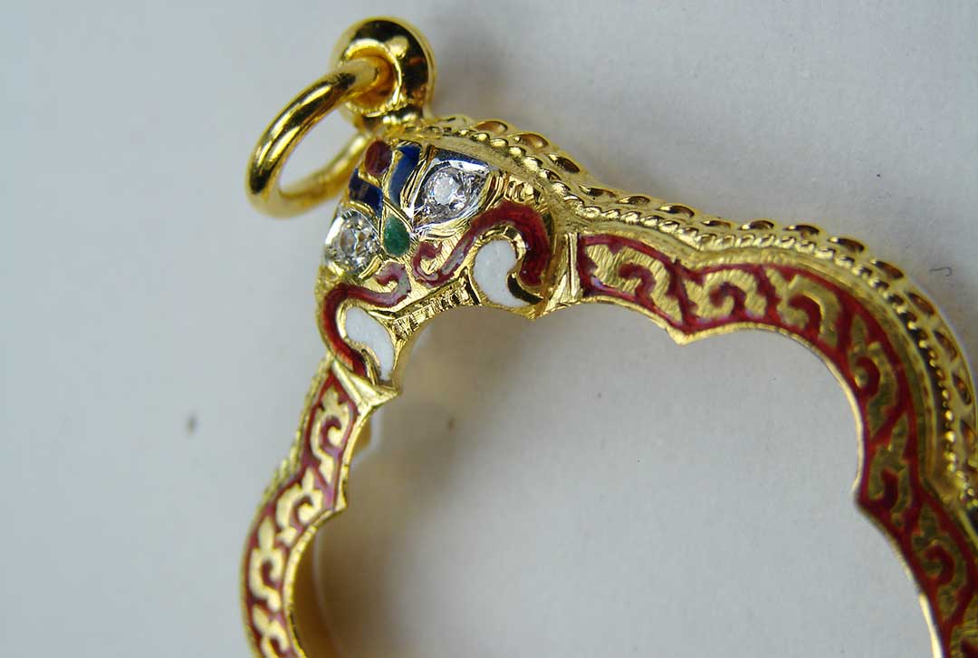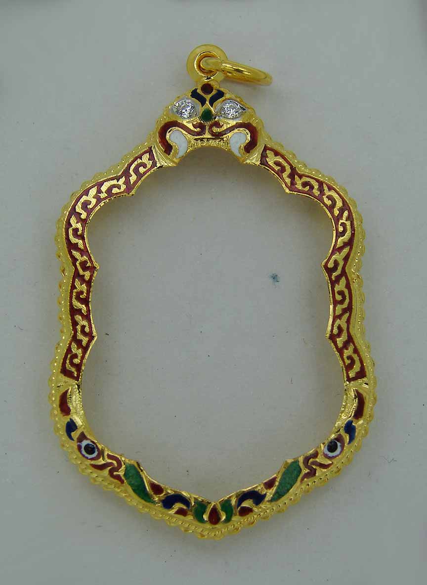 กรอบทองลงยาร้อน เกลียวโปเต้ ( ฝังเพชร CZ 2 เม็ด )