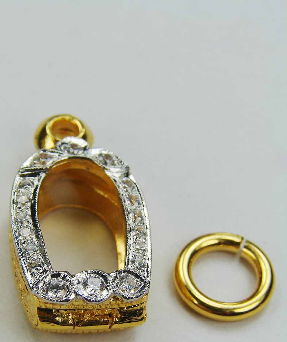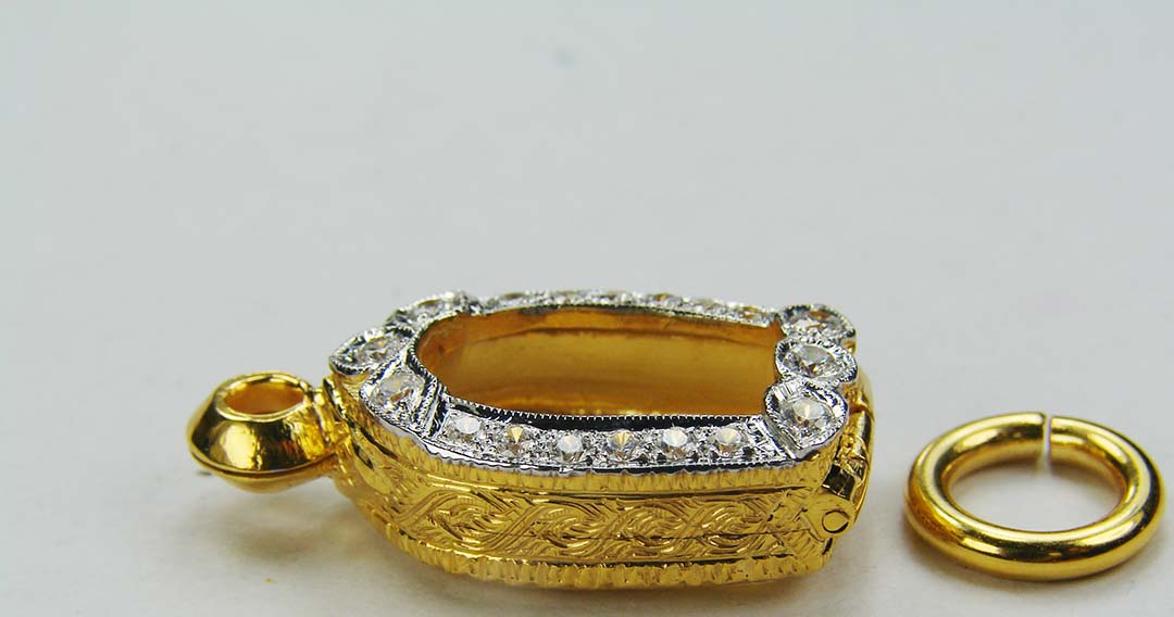ตลับ ** กรอบทองฝังเพชร ใส่ปรกใบมะขาม ( ปรกปี 2518
